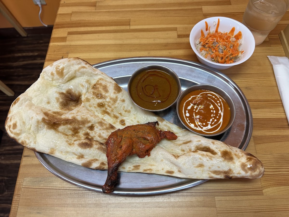Walked in on a Monday at 1830 and there wasn’t any customers but us. The service was so kind it would knock your sox off…or because it was in Japanese, it might have knocked your 下駄 off. For all that food included in the picture + a drink and another naan the total came to 2460円. The restaurant was clean. Has three to four parking spots. Best Indian food I’ve ever had! The chef appeared to be Indian!